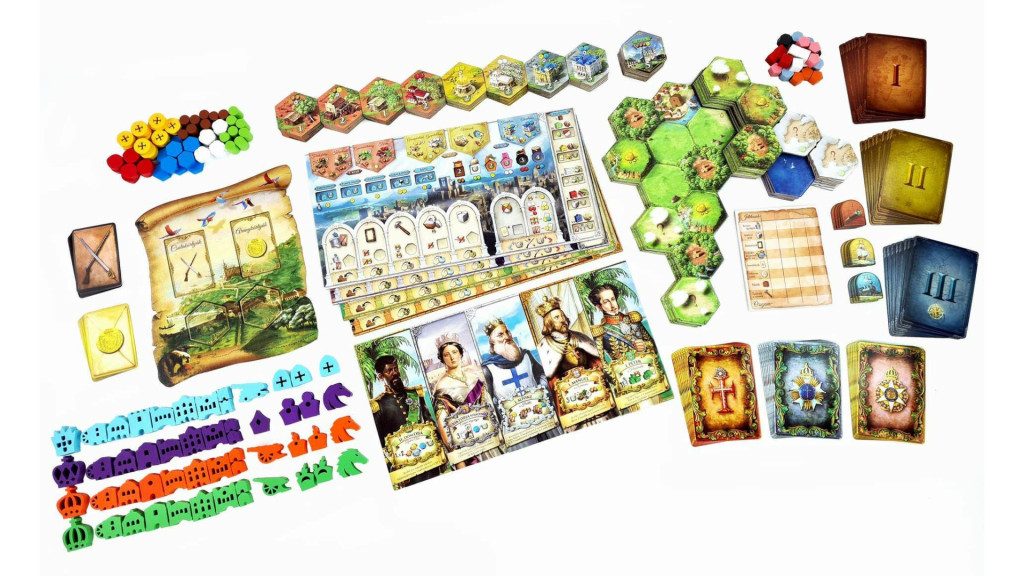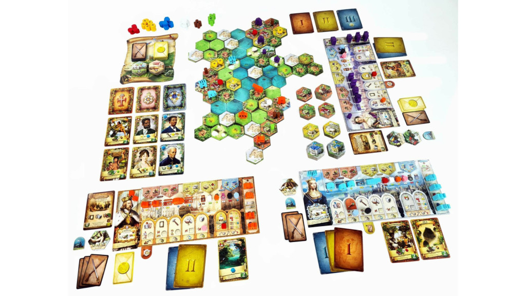 - 4 játékostábla – mindenki saját birodalma, saját erősségekkel.