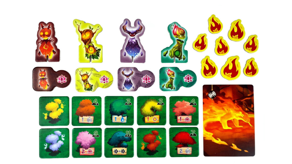- 4 erdőszellem kartonfigura – a játékosok avatárjai, eltérő képességekkel.