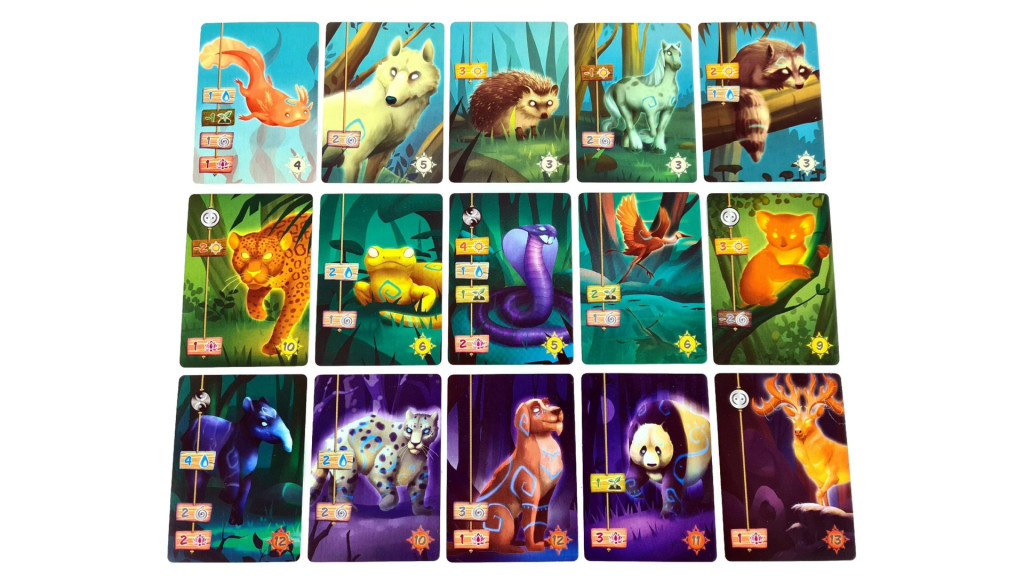 - 14 kezdő őrzőállatkártya – mind a négy erdőszellem induló segítői.