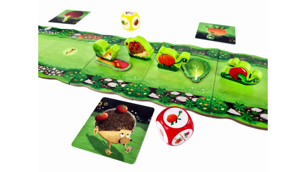 A kert lakói végre nekiesnének a nagy nyári lakomának… amikor hirtelen megjelenik a mérges kertész! Innentől nincs mese: minden állat próbál kijutni a kertből, te pedig titokban egy kedvencet választasz, akiért drukkolhatsz teljes szívvel. A Kerti kalamajka egy vidám, gyors versenyjáték, ahol minden dobásnál történik valami, és közben végig megy a nevetős izgalom: „na, most ki kerül előre?”