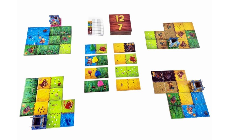 - 48 dominólapka, mindegyik kétféle tájat tartalmaz, eltérő számú koronával