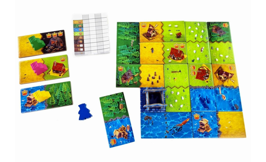 A Kingdomino egy elegáns és könnyen tanulható játék, ahol dominó-szerű lapkák segítségével építed fel a saját 5x5-ös királyságodat. A cél, hogy a különböző típusú tájakat – erdőt, vizet, mezőt, bányát, mocsarat, hegyvidéket – úgy kombináld, hogy minél nagyobb, összefüggő területeket hozz létre. De a lényeg nem csak a méret: csak azok a területek érnek sokat, amelyek koronát is tartalmaznak. Azaz: méret × korona = pont. A csavar? A legjobb lapkákhoz tartozik a legutolsó választási lehetőség a következő körben… szóval figyelni kell, mit és mikor választasz.