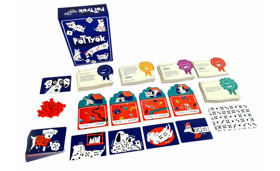A Pöttyök egy családi dobókockás játék, ahol a kutyák megszerzése a cél – de nem mindegy, hogyan játszol a pöttyökkel. Minden körben dobással indítasz, majd eldöntöd, hogy a kapott pöttyöket a kutyáidra teszed, félrerakod, vagy elásod. A kutyák a megfelelő mintákra várnak, és ha ügyesen teljesíted őket, tiéd lehet a győzelem. De vigyázz: túl sok elásott pötty veszélyes lehet!
