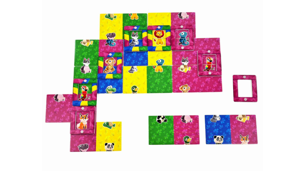 A Zoomino olyan, mintha egy mókás állatkertbe csöppennétek, ahol az állatok néha… kicsit összekeveredtek. Itt simán születhet egy panda-fejű papagáj, vagy egy oroszlánból lett „valami más” – de pont ez benne a poén! A játékban dominókból építitek fel az állatokat, és ha sikerül egy igazi (nem hibrid) állatkát összerakni, gyorsan lefotózzátok egy kerettel, hogy pontot szerezzetek. Könnyű, vidám és tele van nevetős pillanatokkal.